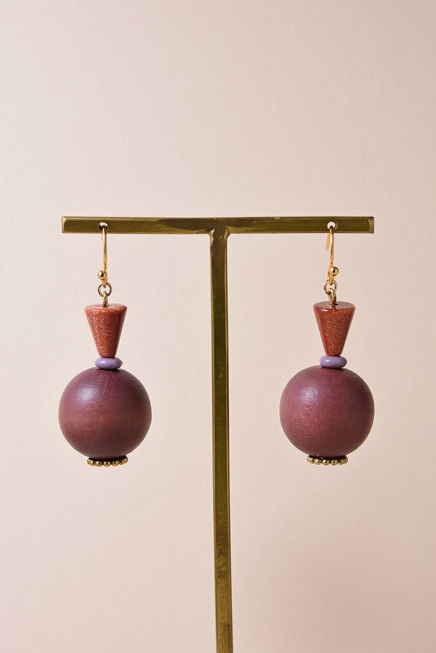 ピアス: ウッドパーツ &砂金石 「ハロー南国」